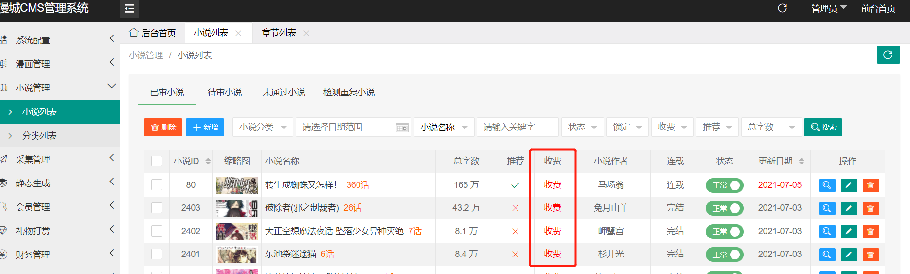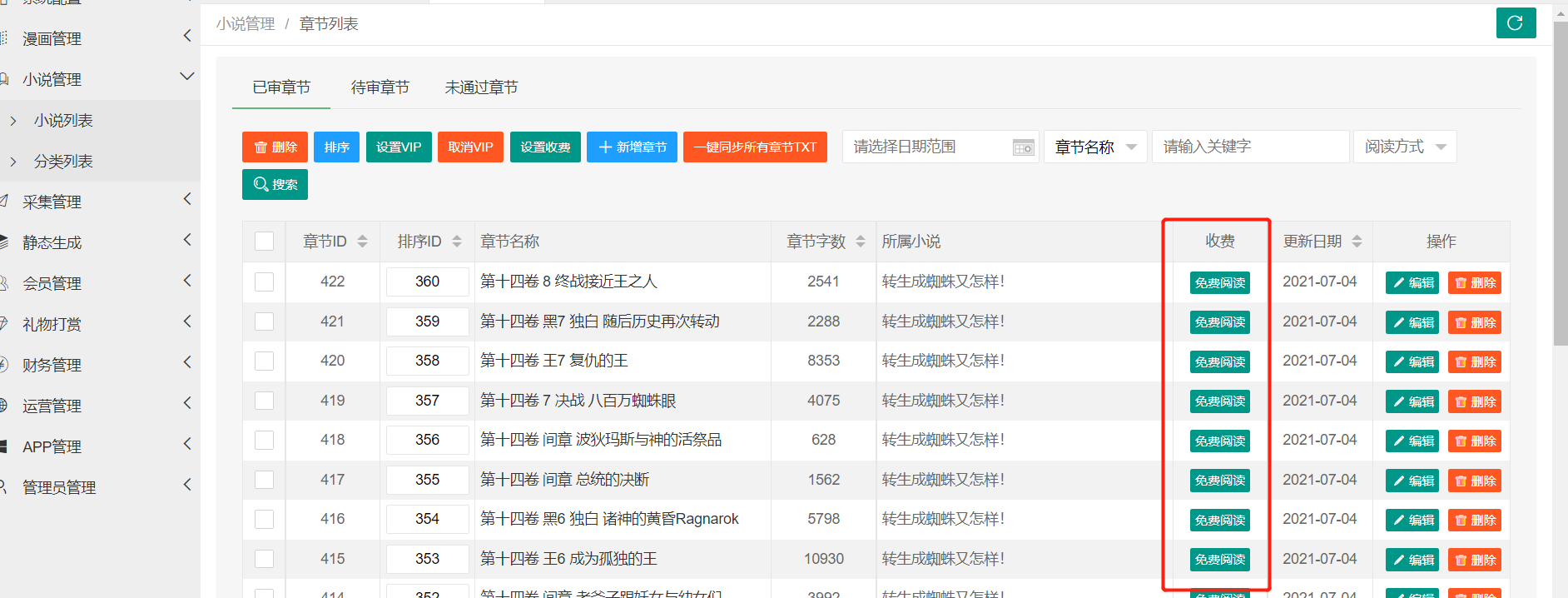 所有章节所需的硬币已经由5改成0了,后台点进章节也显示的是免费阅读,但是小说显示是收费的