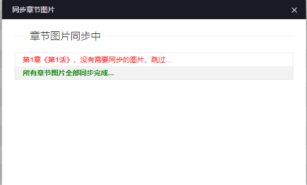 只同步了几个章节,由于某种原因章节同步图片中断了,中断后想重新一建同步所有图片,不会跳过